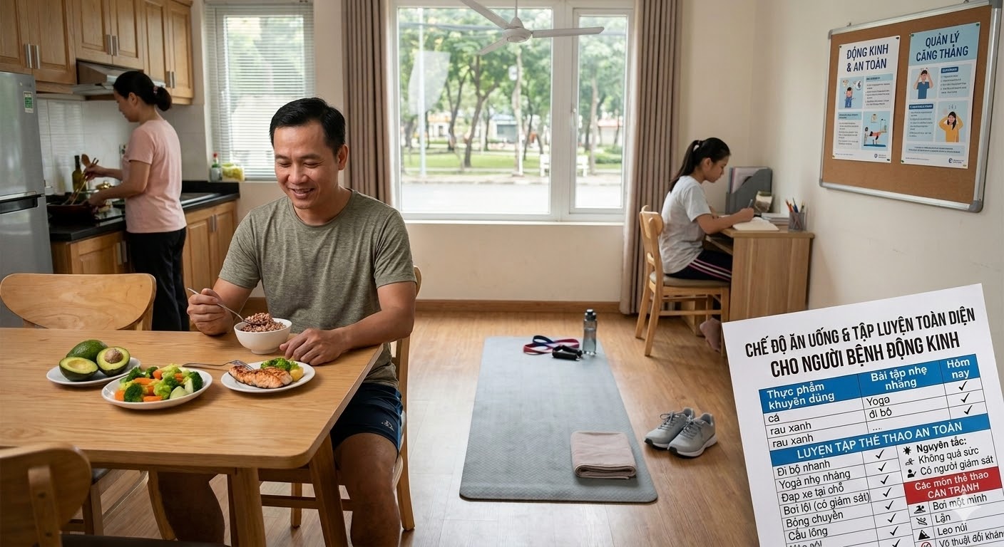 Ngoài chế độ ăn, việc sinh hoạt điều độ cũng rất quan trọng. Người bệnh nên ngủ đủ giấc, tránh thức khuya, căng thẳng kéo dài và làm việc quá sức. Việc tập luyện thể dục nhẹ nhàng, duy trì tinh thần thoải mái và tái khám định kỳ sẽ giúp người bệnh kiểm soát tốt tình trạng bệnh và nâng cao chất lượng cuộc sống.